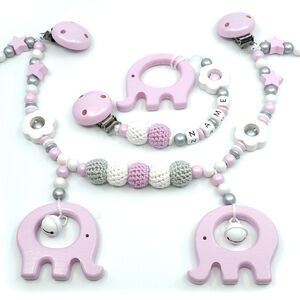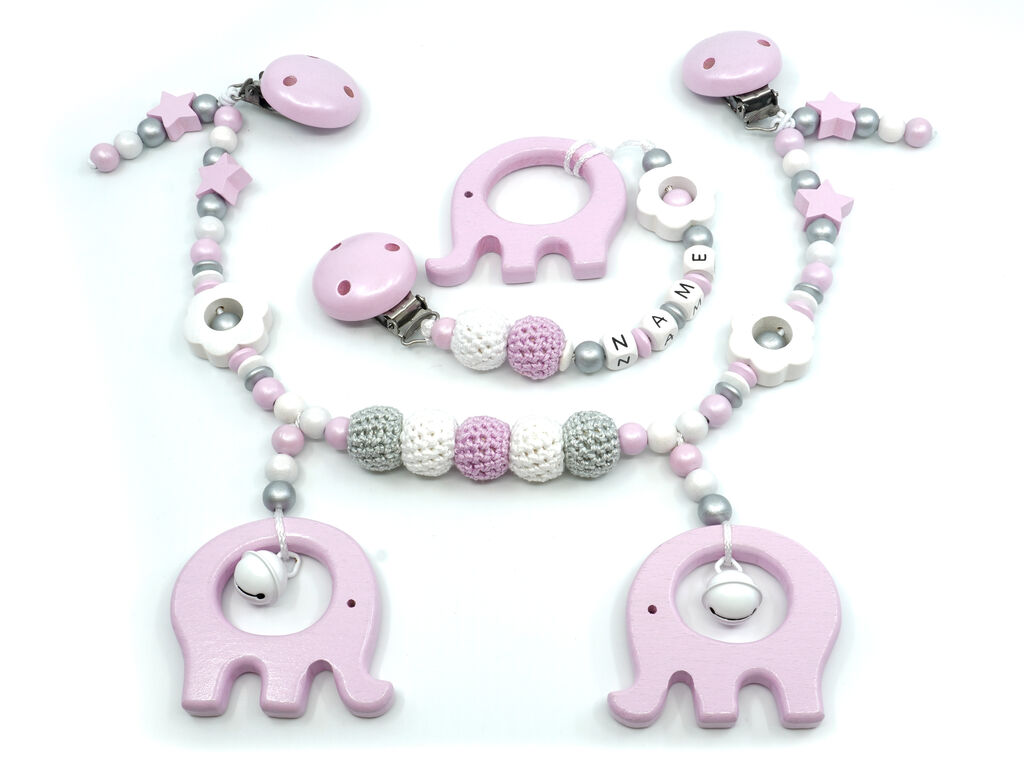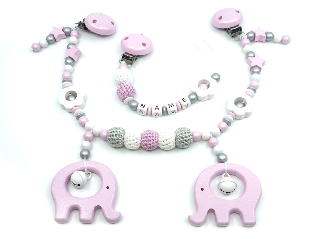 Die abgebildeten Kinderwagenketten sind Designbeispiele.