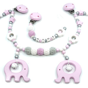 Diese Kinderwagenkette verfügt über eine Länge von ca. 41 cm (ohne Clips gemesen). Die Befestigungsclips ermöglichen das einfache anclipsen am Verdeck des Kinderwagen oder Buggy. Auf Wunsch kann die Länge gerne an ihren Kinderwagen angepasst werden - einfach Ausmessen und Maße in der Kaufabwicklung angeben.