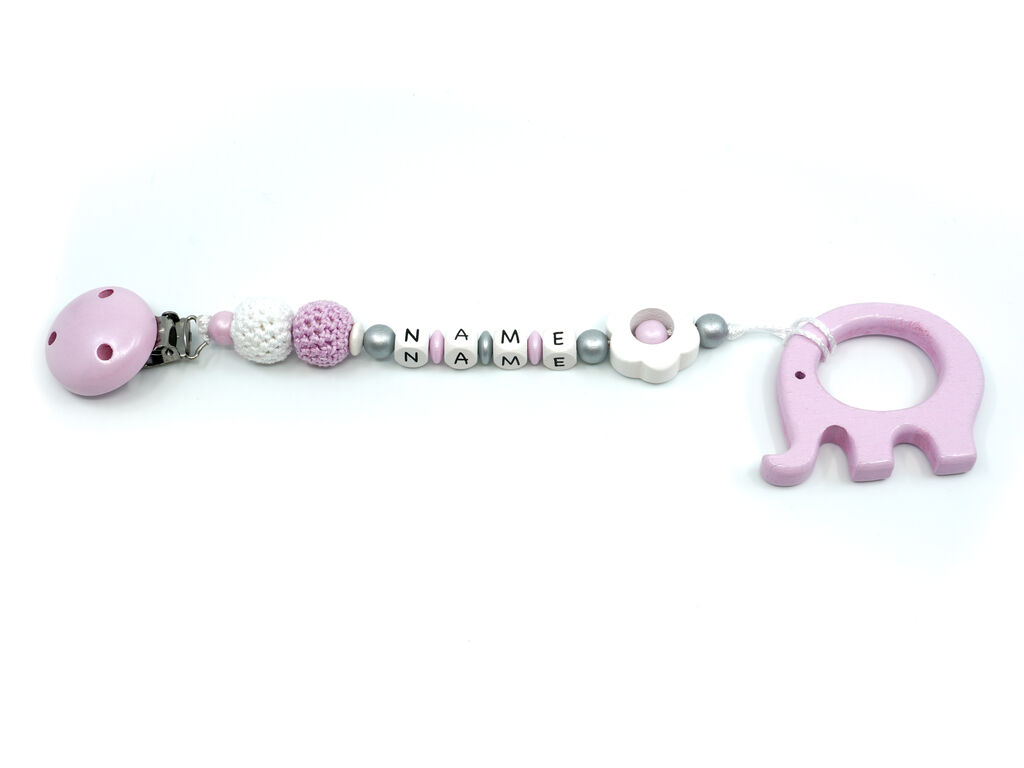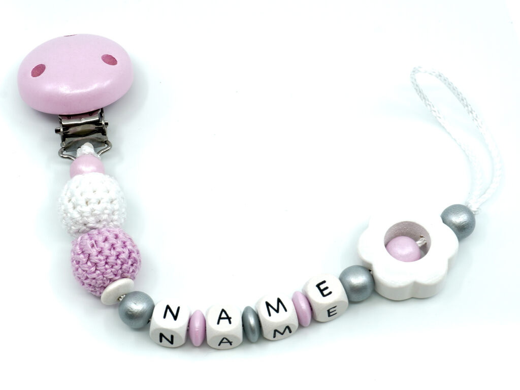 Für die Schnullerketten, Kinderwagenketten, Greiflinge, Anhänger etc. verwende ich folgendes Material: