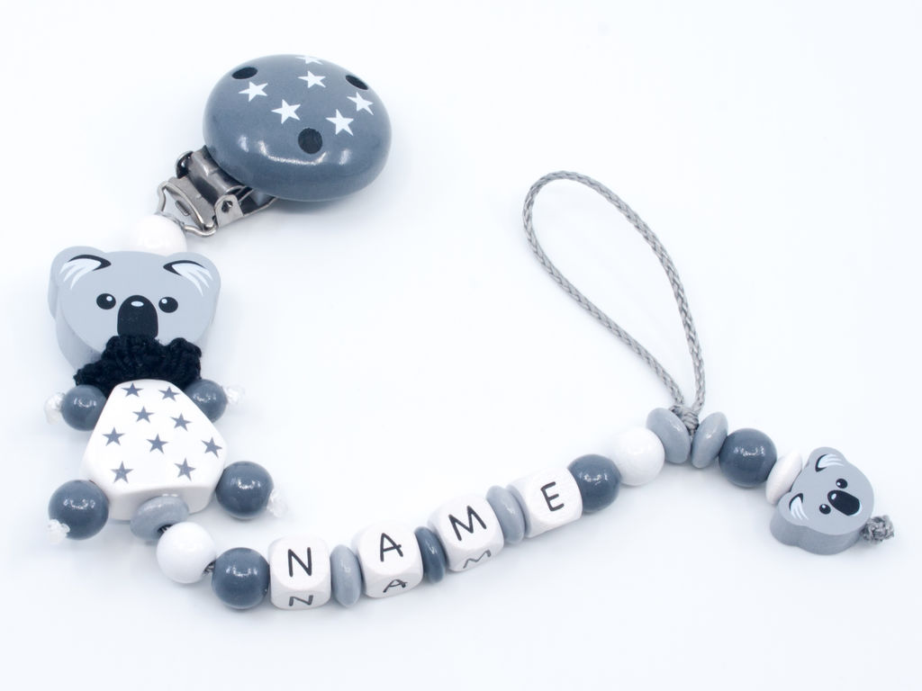 Die abgebildeten Schnullerketten sind Designbeispiele, die je nach Länge des Namens oder nach Euren Individualisierungswünschen verändert werden um die gesetzliche Norm der Schnullerketten von 22cm Länge (ab Clip) nicht zu überschreiten.